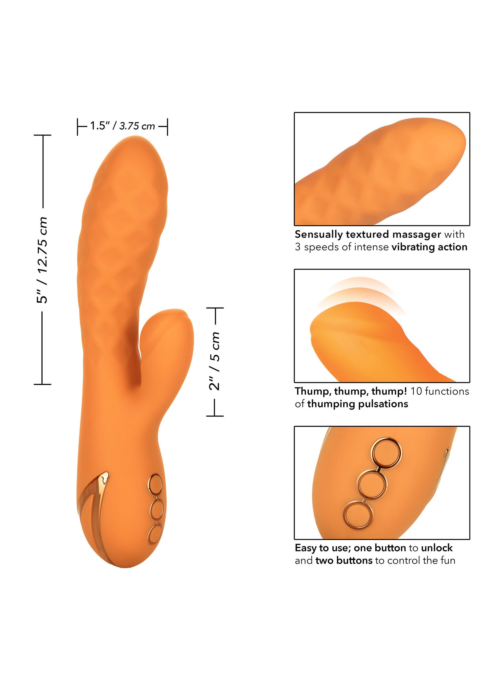 De California Dreaming Newport Beach Babe is een luxe stimulator met 10 intense vibratiestanden en 3 verschillende vibratiesnelheden. Daarnaast is de vibe volledig waterdicht, waardoor hij uiterst geschikt is voor gebruik in bad of douche. Laad de stimulator in 2.5 uur op met de meegeleverde USB-oplaadkabel om te genieten van 40 minuten snelle stimulatie of 2.5 uur lage snelheidstrillingen. De vibe is gemaakt uit hypoallergene, ongeparfurmeerd siliconen en is lichaamsveilig. Wij adviseren dit product te gebruiken met een glijmiddel.