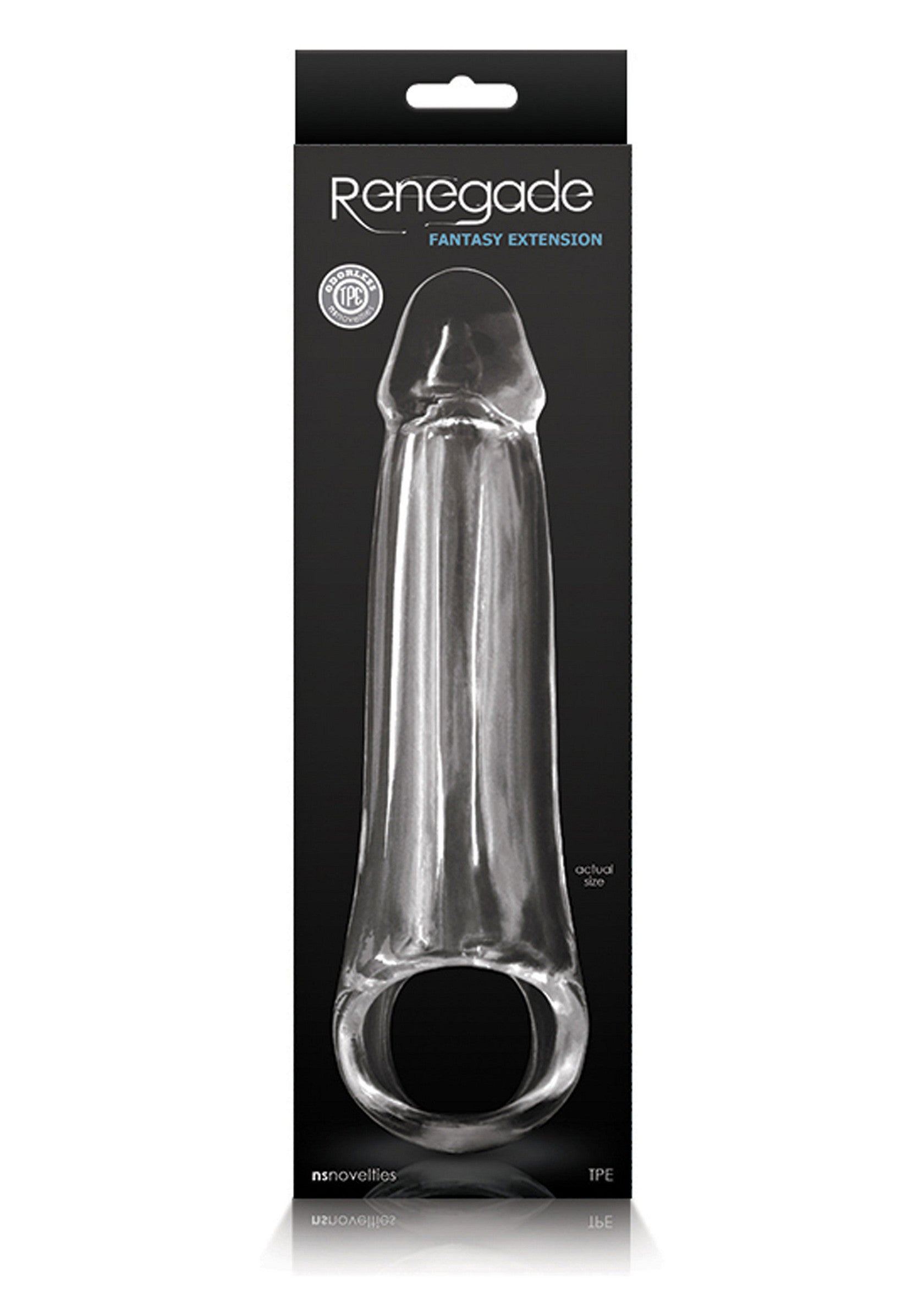 De Renegade Fantasy Extension L is een verlengende penissleeve, ontworpen voor beginnende en ervaren gebruikers. Deze Extension heeft een totale lengte van 23.3 cm en maakt de erectie langer en dikker. Daarnaast is deze sleeve volledig transparant, zodat de realistische look behouden blijft. De Fantasy Extension heeft een ondersteunende scrotumring voor optimaal comfort. Gemaakt van superzacht TPE, volledig lichaamsveilig en comfortabel in gebruik. Wij adviseren dit product te gebruiken met een glijmiddel.